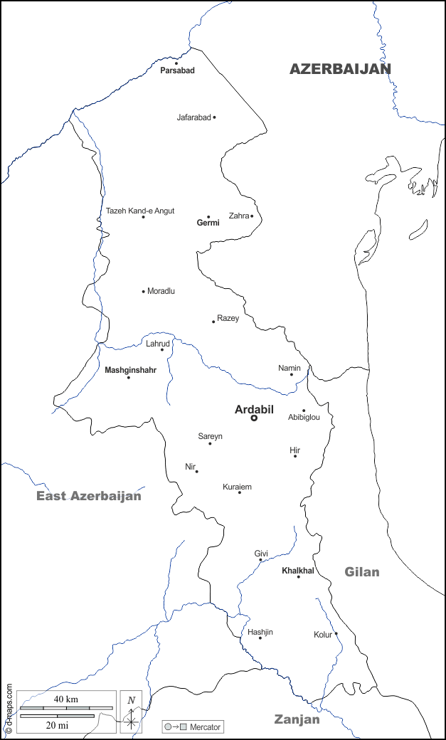d-maps > एशिया > ईरान > अर्दबील प्रांत > सीमाओं, जल-सर्वेक्षण, मुख्य शहरों, नाम, सफेद
