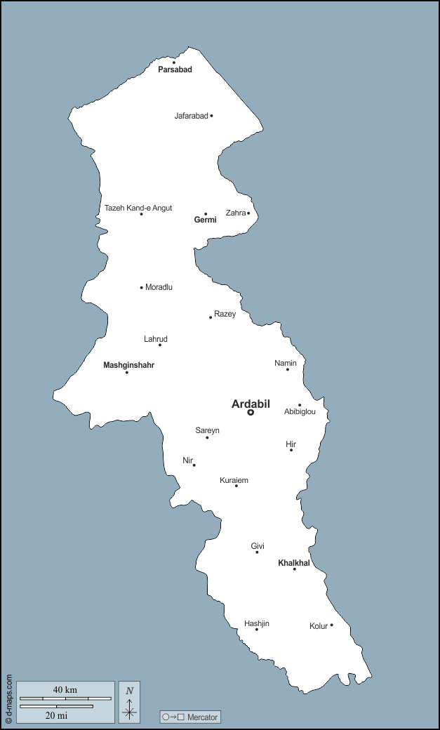 d-maps > एशिया > ईरान > अर्दबील प्रांत > बाह्यरेखा, मुख्य शहरों, नाम