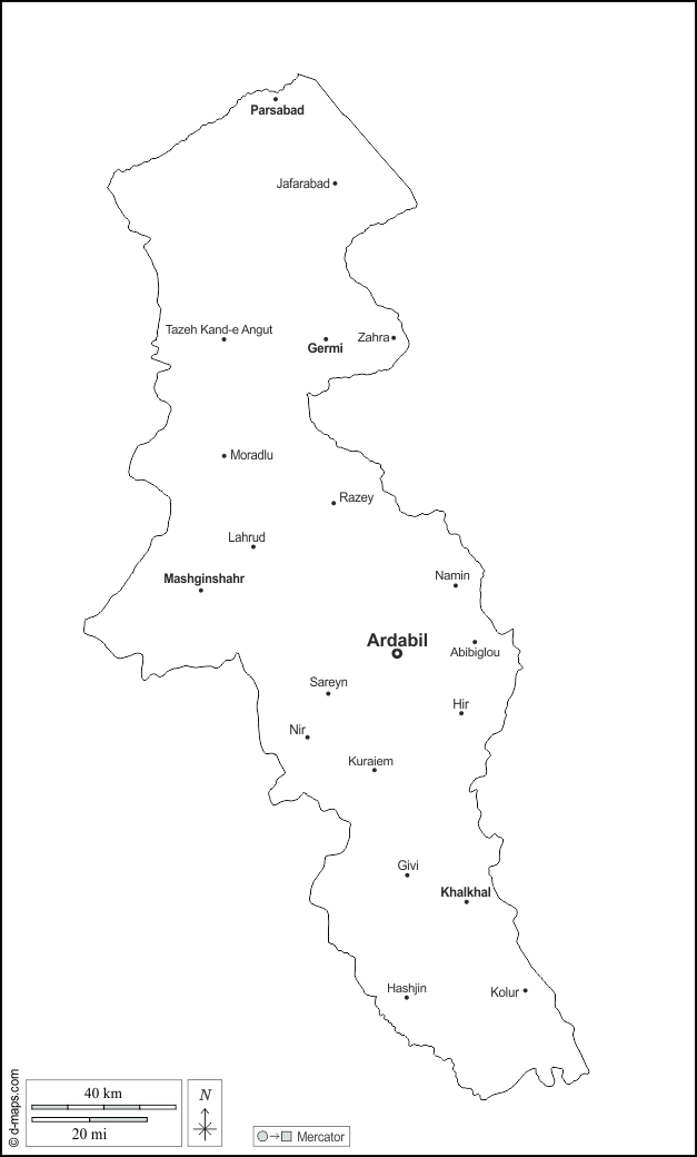 d-maps > एशिया > ईरान > अर्दबील प्रांत > बाह्यरेखा, मुख्य शहरों, नाम, सफेद