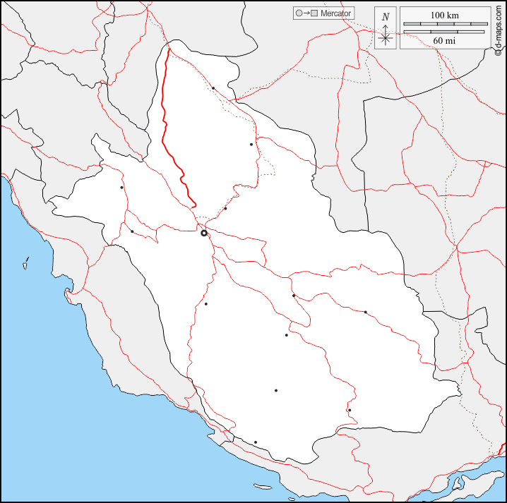 d-maps > एशिया > ईरान > फ़ार्स > सीमाओं, मुख्य शहरों, सड़कों