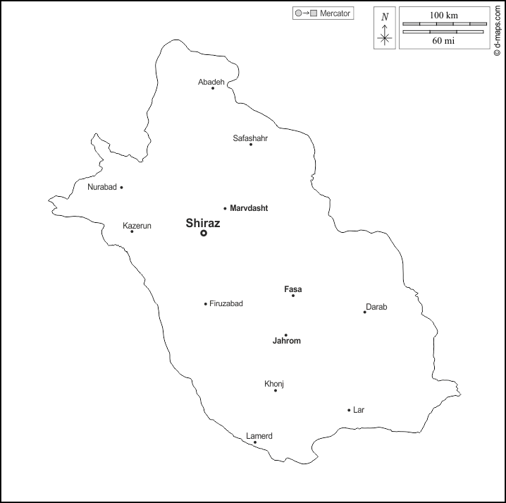 d-maps > एशिया > ईरान > फ़ार्स > बाह्यरेखा, मुख्य शहरों, नाम, सफेद