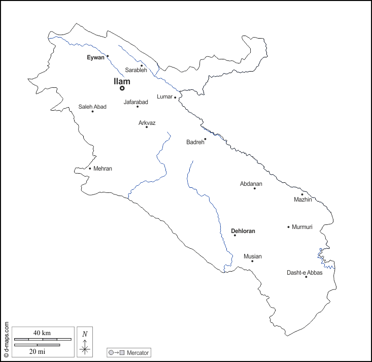 d-maps > एशिया > ईरान > ईलाम प्रांत > बाह्यरेखा, जल-सर्वेक्षण, मुख्य शहरों, नाम, सफेद