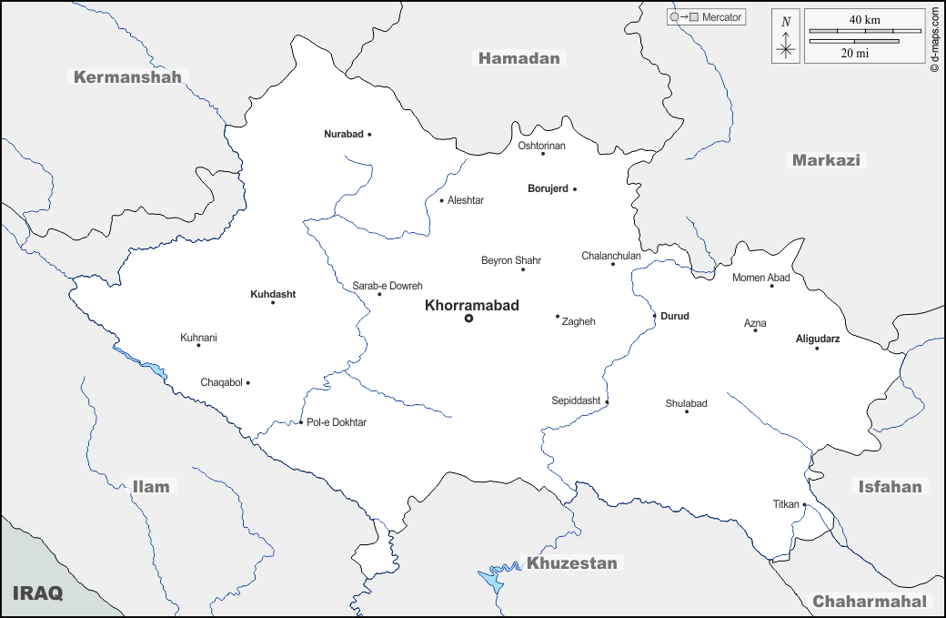 d-maps > एशिया > ईरान > लूरिस्तान > सीमाओं, जल-सर्वेक्षण, मुख्य शहरों, नाम