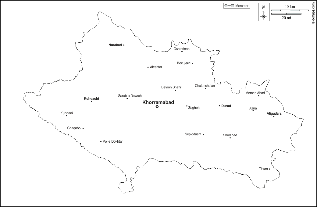 d-maps > एशिया > ईरान > लूरिस्तान > बाह्यरेखा, मुख्य शहरों, नाम, सफेद