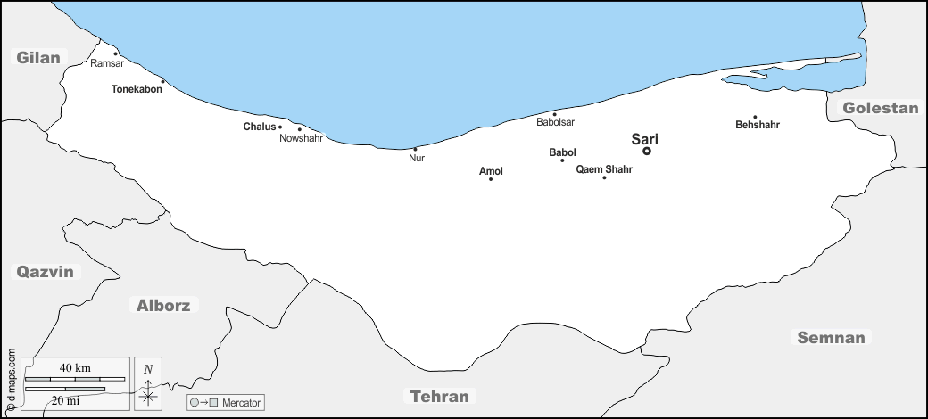 d-maps > एशिया > ईरान > माज़ंदरान प्रांत > सीमाओं, मुख्य शहरों, नाम