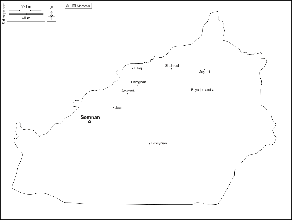 d-maps > एशिया > ईरान > सेमनान प्रांत > बाह्यरेखा, मुख्य शहरों, नाम, सफेद