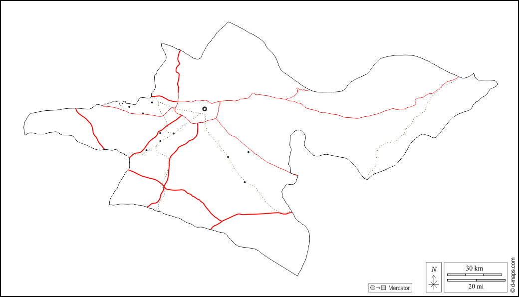 d-maps > एशिया > ईरान > तेहरान प्रांत > बाह्यरेखा, मुख्य शहरों, सड़कों, सफेद