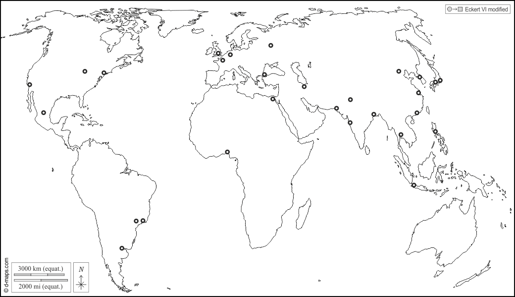 विश्व प्लैनिस्फीयर (यूरोप अफ्रीका) : मुख्य कस्बों