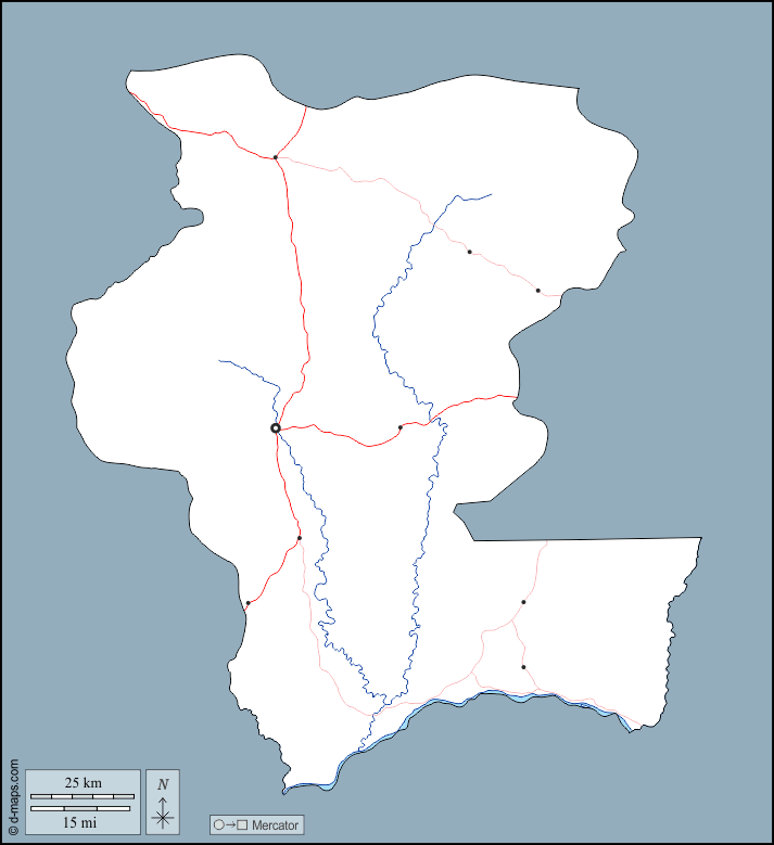 d-maps > अफ्रीका > मध्य अफ़्रीकी गणराज्य > केमो > बाह्यरेखा, जल-सर्वेक्षण, मुख्य शहरों, सड़कों
