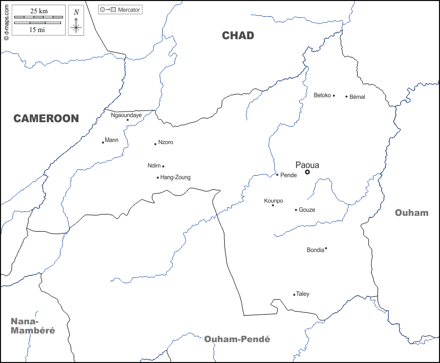 d-maps > अफ्रीका > मध्य अफ़्रीकी गणराज्य > लिम-पेन्डे > सीमाओं, जल-सर्वेक्षण, मुख्य शहरों, नाम, सफेद