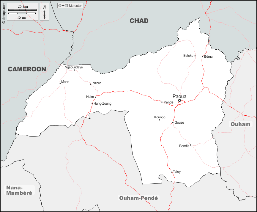 d-maps > अफ्रीका > मध्य अफ़्रीकी गणराज्य > लिम-पेन्डे > सीमाओं, मुख्य शहरों, सड़कों, नाम