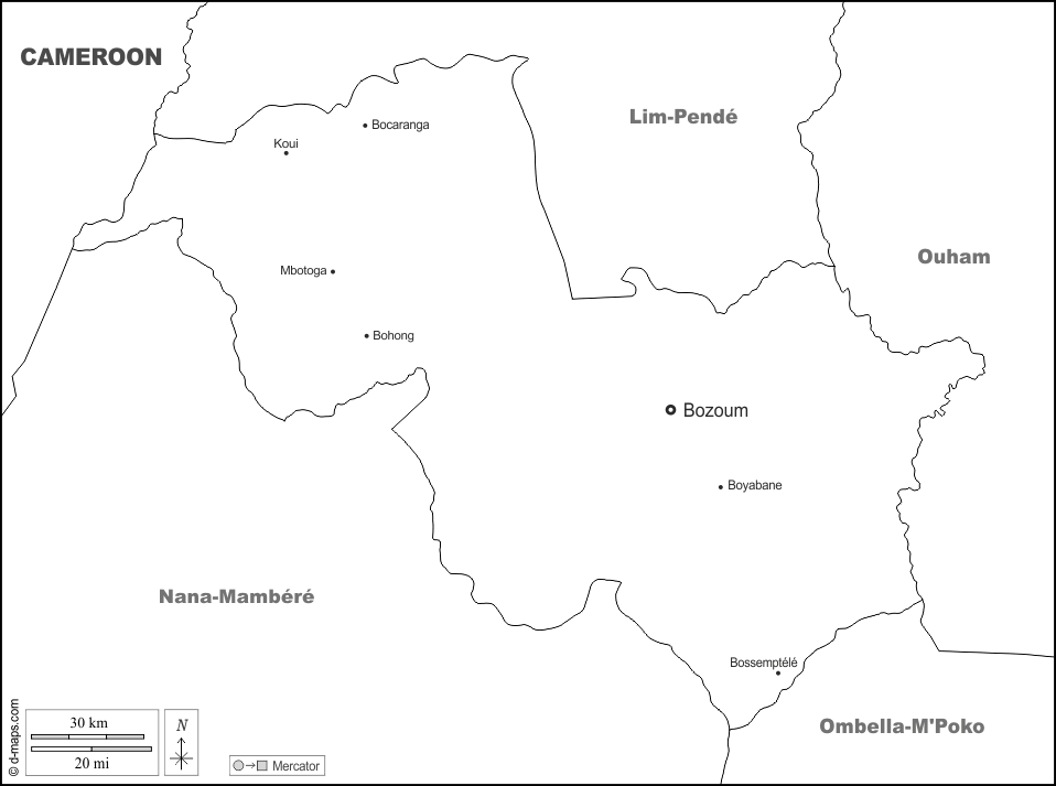 d-maps > अफ्रीका > मध्य अफ़्रीकी गणराज्य > ऑउहम-पेंदे > सीमाओं, मुख्य शहरों, नाम, सफेद