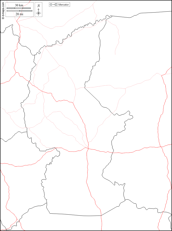 d-maps > अफ्रीका > मध्य अफ़्रीकी गणराज्य > ऑउहम > सीमाओं, सड़कों, सफेद