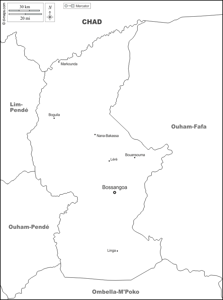 d-maps > अफ्रीका > मध्य अफ़्रीकी गणराज्य > ऑउहम > सीमाओं, मुख्य शहरों, नाम, सफेद