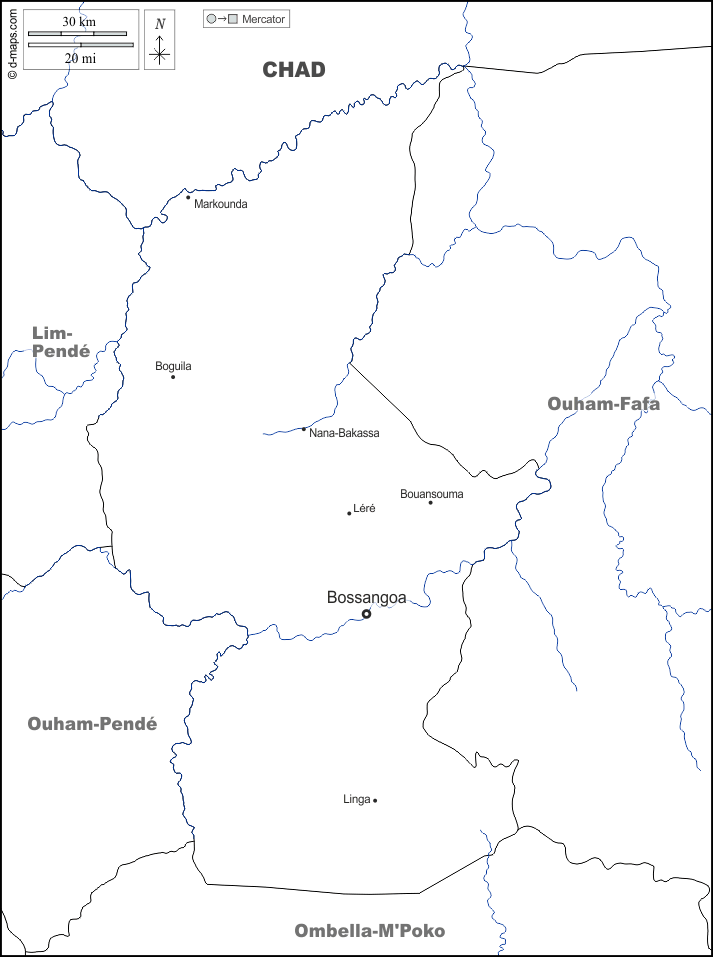 d-maps > अफ्रीका > मध्य अफ़्रीकी गणराज्य > ऑउहम > सीमाओं, जल-सर्वेक्षण, मुख्य शहरों, नाम, सफेद