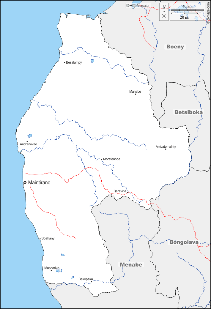 d-maps > अफ्रीका > मेडागास्कर > मेलाकी > सीमाओं, जल-सर्वेक्षण, मुख्य शहरों, सड़कों, नाम