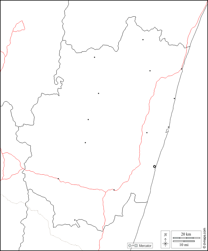 d-maps > अफ्रीका > मेडागास्कर > वटोवावी > सीमाओं, मुख्य शहरों, सड़कों, सफेद
