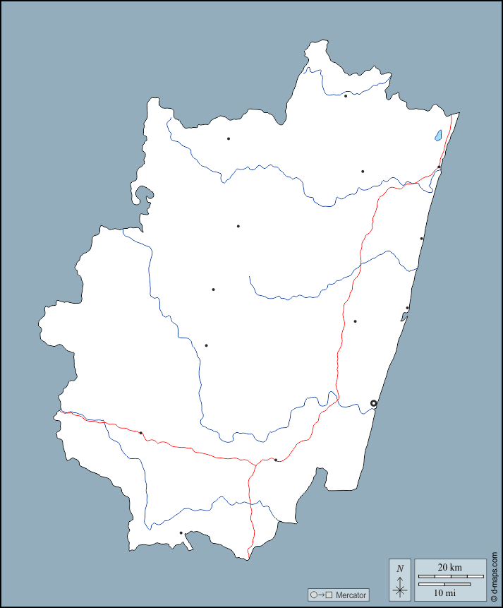 d-maps > अफ्रीका > मेडागास्कर > वटोवावी > बाह्यरेखा, जल-सर्वेक्षण, मुख्य शहरों, सड़कों