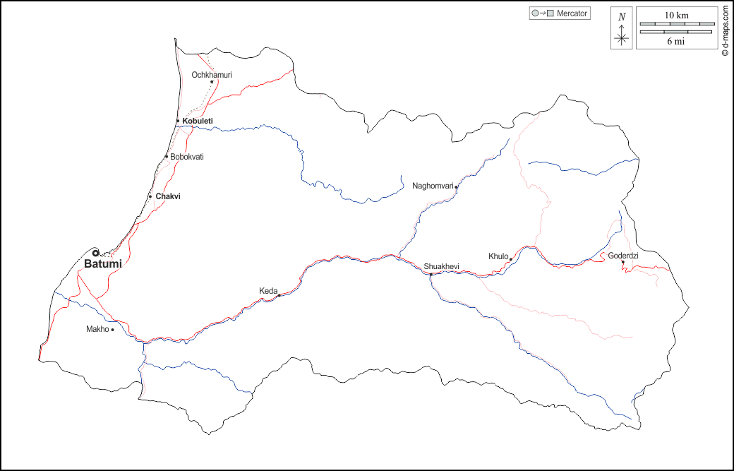 d-maps > एशिया > जॉर्जिया > अद्जारा > बाह्यरेखा, जल-सर्वेक्षण, मुख्य शहरों, सड़कों, नाम, सफेद