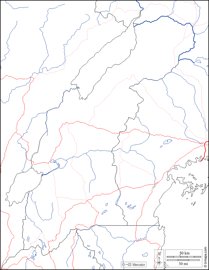 d-maps > अफ्रीका > युगांडा > वेस्टर्न > सीमाओं, जल-सर्वेक्षण, सड़कों, सफेद