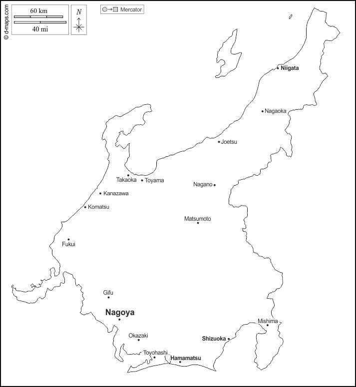 d-maps > एशिया > जापान > चुबू क्षेत्र > बाह्यरेखा, मुख्य शहरों, नाम, सफेद