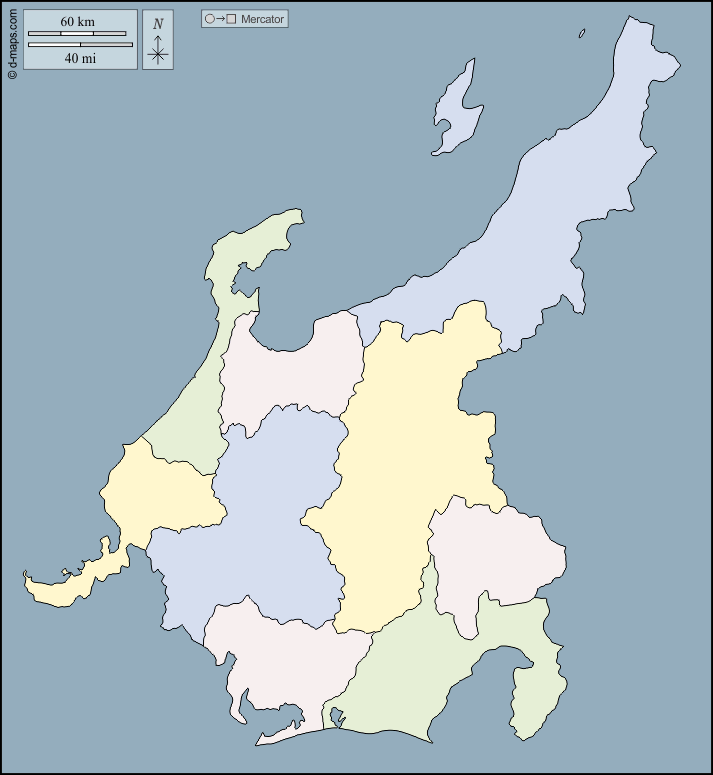 d-maps > एशिया > जापान > चुबू क्षेत्र > बाह्यरेखा, क्षेत्रों, रंग