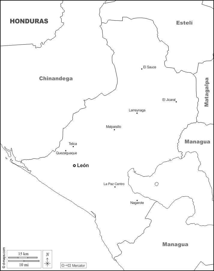 d-maps > महाअमेरिका > निकारागुआ > लिओन > सीमाओं, मुख्य शहरों, नाम, सफेद