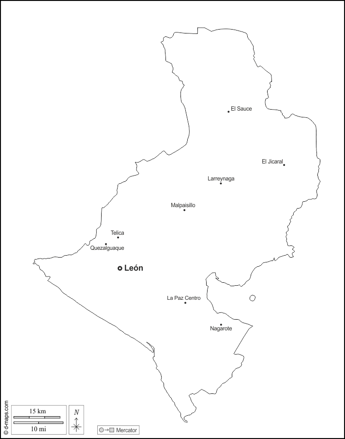 d-maps > महाअमेरिका > निकारागुआ > लिओन > बाह्यरेखा, मुख्य शहरों, नाम, सफेद
