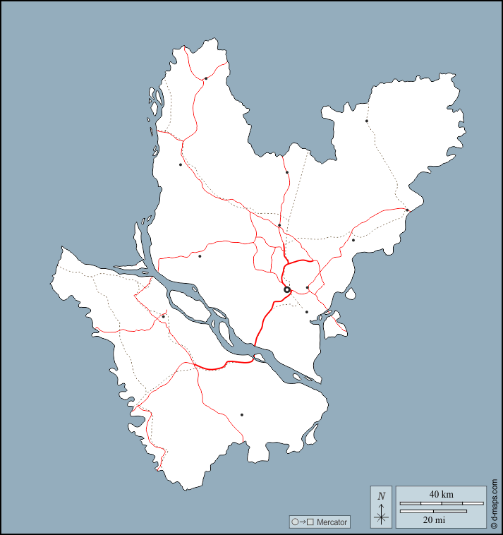 d-maps > एशिया > बांग्लादेश > ढाका विभाग > बाह्यरेखा, मुख्य शहरों, सड़कों