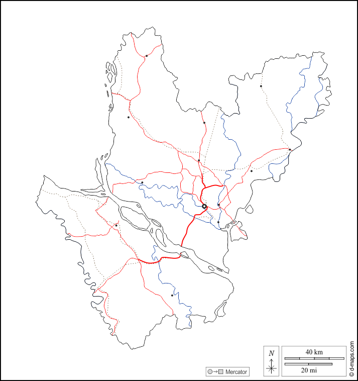 d-maps > एशिया > बांग्लादेश > ढाका विभाग > बाह्यरेखा, जल-सर्वेक्षण, मुख्य शहरों, सड़कों, सफेद
