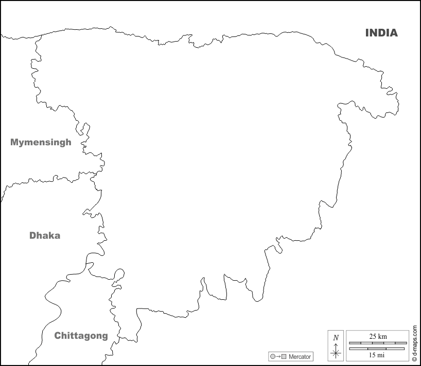 d-maps > एशिया > बांग्लादेश > सिलहट विभाग > सीमाओं, नाम, सफेद