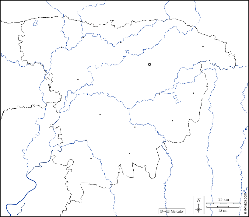 d-maps > एशिया > बांग्लादेश > सिलहट विभाग > सीमाओं, जल-सर्वेक्षण, मुख्य शहरों, सफेद