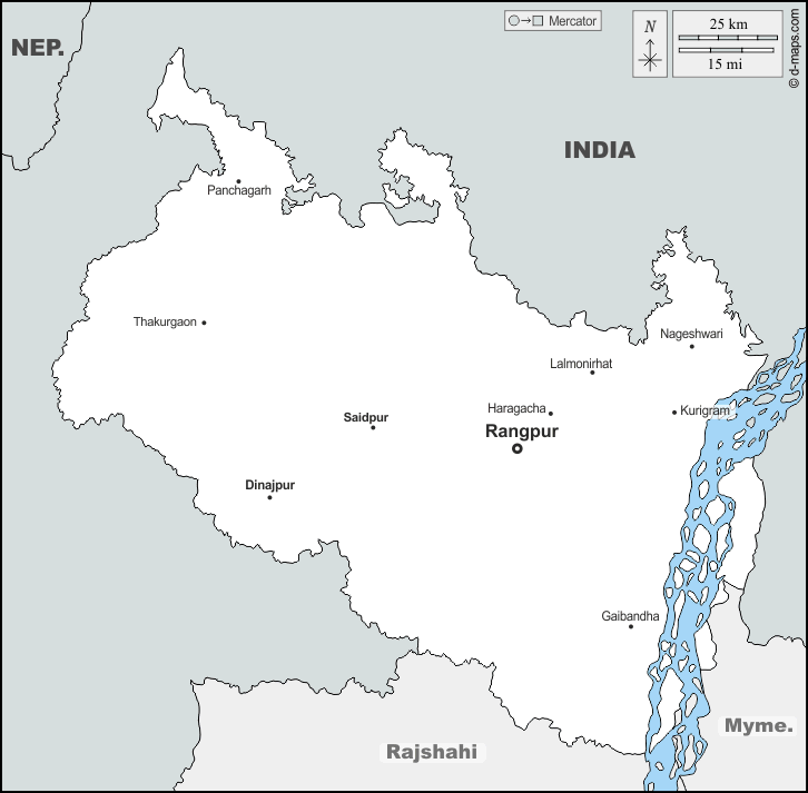 d-maps > एशिया > बांग्लादेश > रंगपुर विभाग > सीमाओं, मुख्य शहरों, नाम