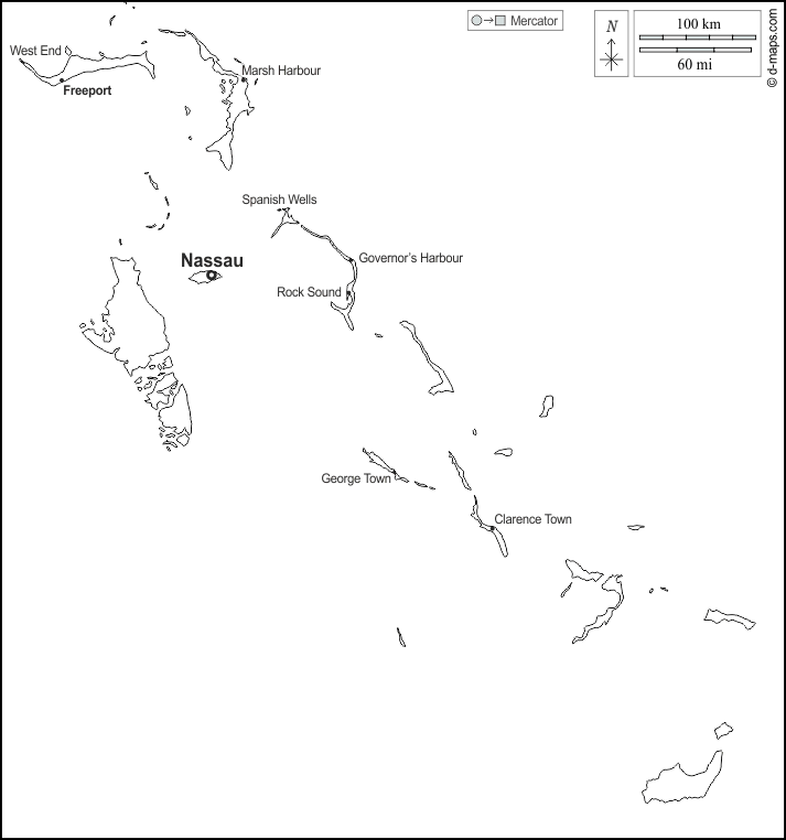 d-maps > महाअमेरिका > बहामास > बाह्यरेखा, मुख्य शहरों, नाम, सफेद