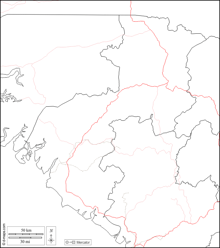d-maps > अफ्रीका > गिनी > बोके क्षेत्र > सीमाओं, सड़कों, सफेद