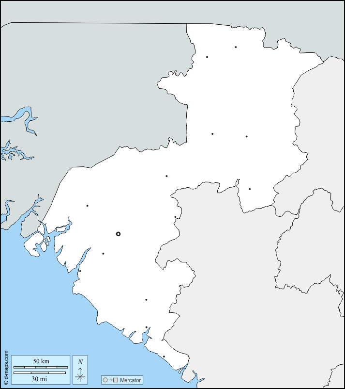 d-maps > अफ्रीका > गिनी > बोके क्षेत्र > सीमाओं, मुख्य शहरों