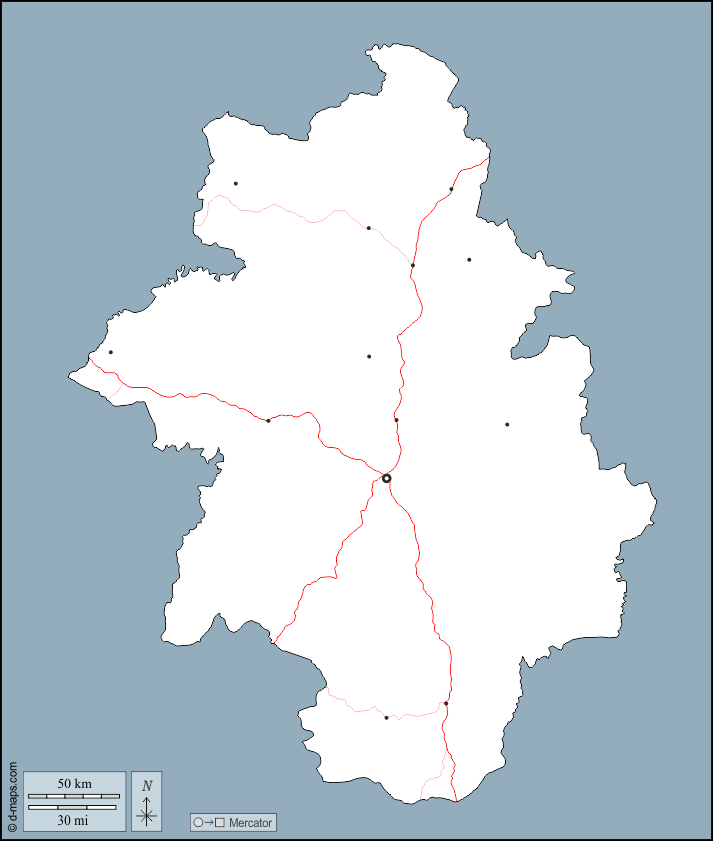 d-maps > अफ्रीका > गिनी > कंकण क्षेत्र > बाह्यरेखा, मुख्य शहरों, सड़कों