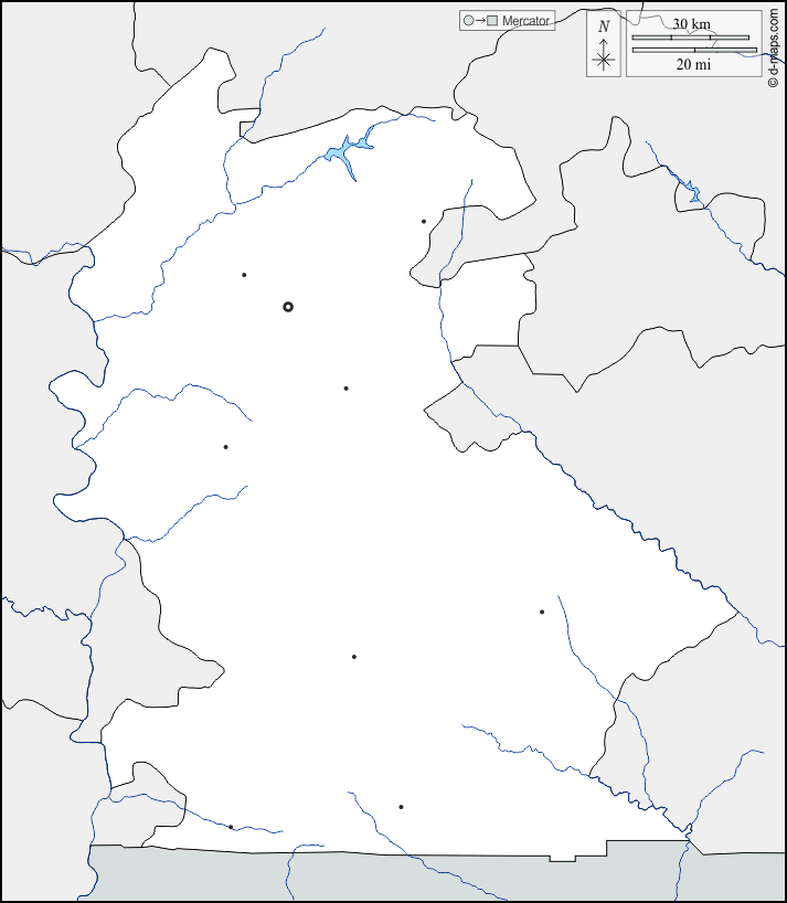 d-maps > अफ्रीका > बुर्किना फासो > नंदो > सीमाओं, जल-सर्वेक्षण, मुख्य शहरों