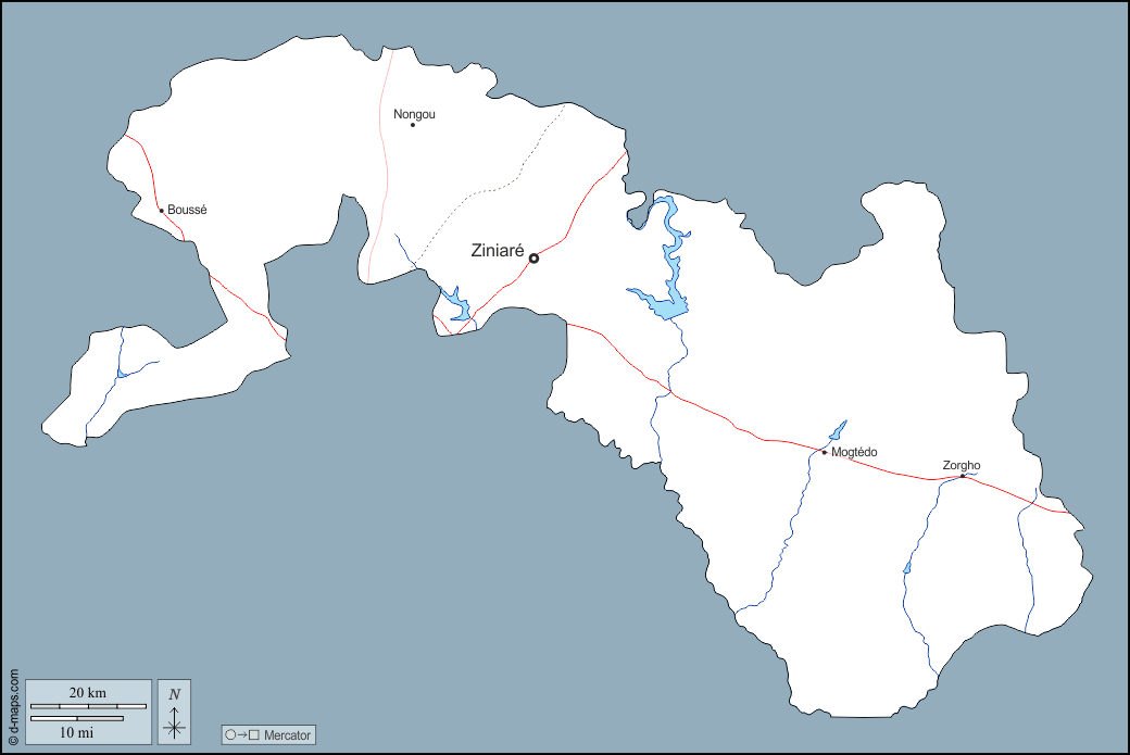 d-maps > अफ्रीका > बुर्किना फासो > ओबरी > बाह्यरेखा, जल-सर्वेक्षण, मुख्य शहरों, सड़कों, नाम