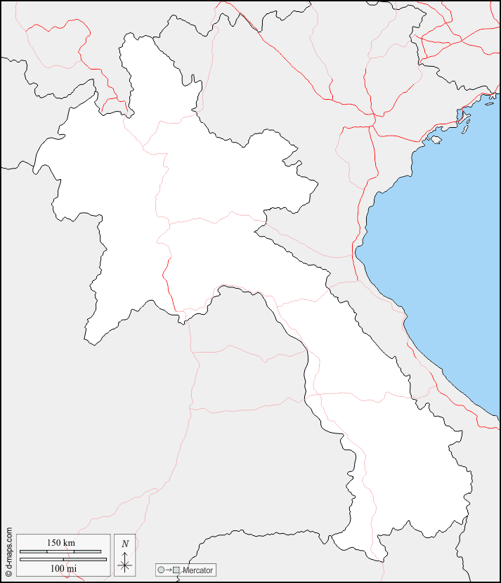 d-maps > एशिया > लाओस > सीमाओं, सड़कों