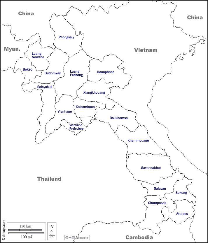 d-maps > एशिया > लाओस > सीमाओं, प्रांतों, नाम, सफेद