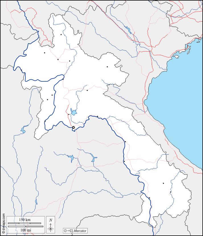 d-maps > एशिया > लाओस > सीमाओं, जल-सर्वेक्षण, मुख्य शहरों, सड़कों