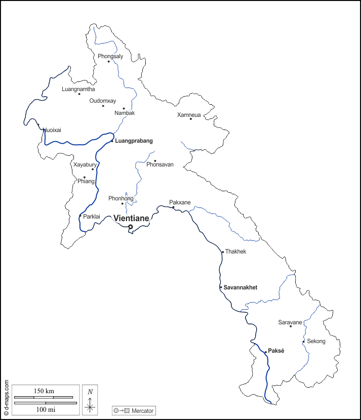 d-maps > एशिया > लाओस > बाह्यरेखा, जल-सर्वेक्षण, मुख्य शहरों, नाम, सफेद