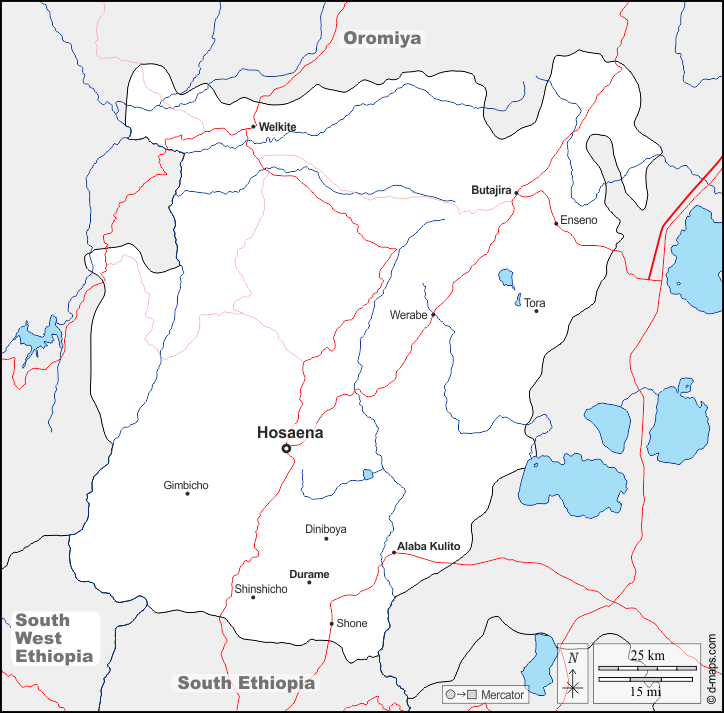 d-maps > अफ्रीका > इथियोपिया > मध्य इथियोपिया > सीमाओं, जल-सर्वेक्षण, मुख्य शहरों, सड़कों, नाम