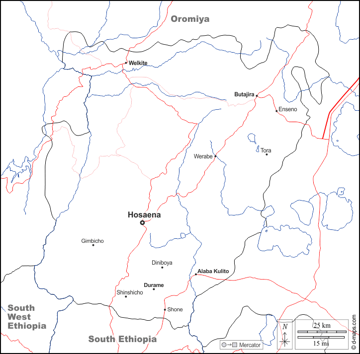 d-maps > अफ्रीका > इथियोपिया > मध्य इथियोपिया > सीमाओं, जल-सर्वेक्षण, मुख्य शहरों, सड़कों, नाम, सफेद
