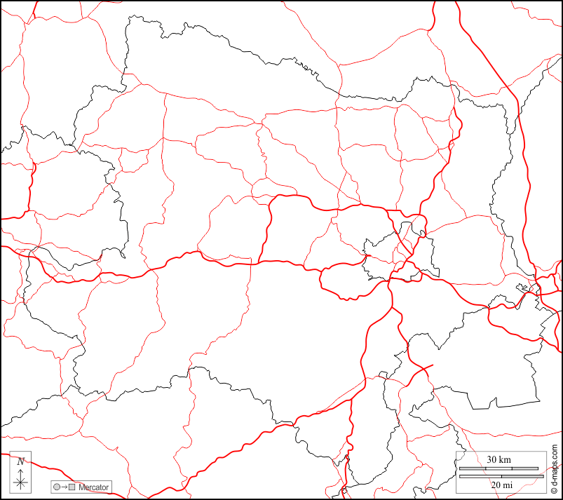 d-maps > यूरोप > ऑस्ट्रिया > लोअर ऑस्ट्रिया > सीमाओं, सड़कों, सफेद