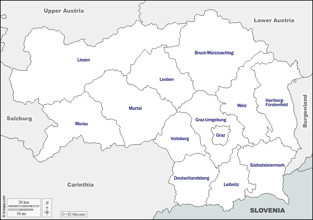 d-maps > यूरोप > ऑस्ट्रिया > स्टायरिया > सीमाओं, क्षेत्र, नाम