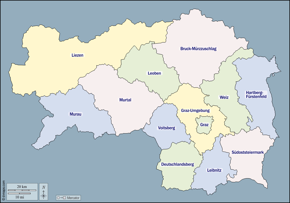 d-maps > यूरोप > ऑस्ट्रिया > स्टायरिया > बाह्यरेखा, क्षेत्र, नाम, रंग