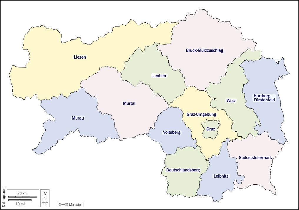 d-maps > यूरोप > ऑस्ट्रिया > स्टायरिया > बाह्यरेखा, क्षेत्र, नाम, रंग, सफेद
