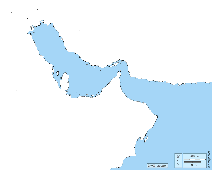 d-maps > एशिया > फारस की खाड़ी > तटों, मुख्य शहरों